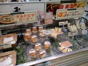 またピザが1枚やハーフサイズで販売されています。ピザ1枚はなんと500円の破格値。以前はなかったサンドイッチやタルトやシュークリームなど冷蔵のスイーツパンも揃っています。