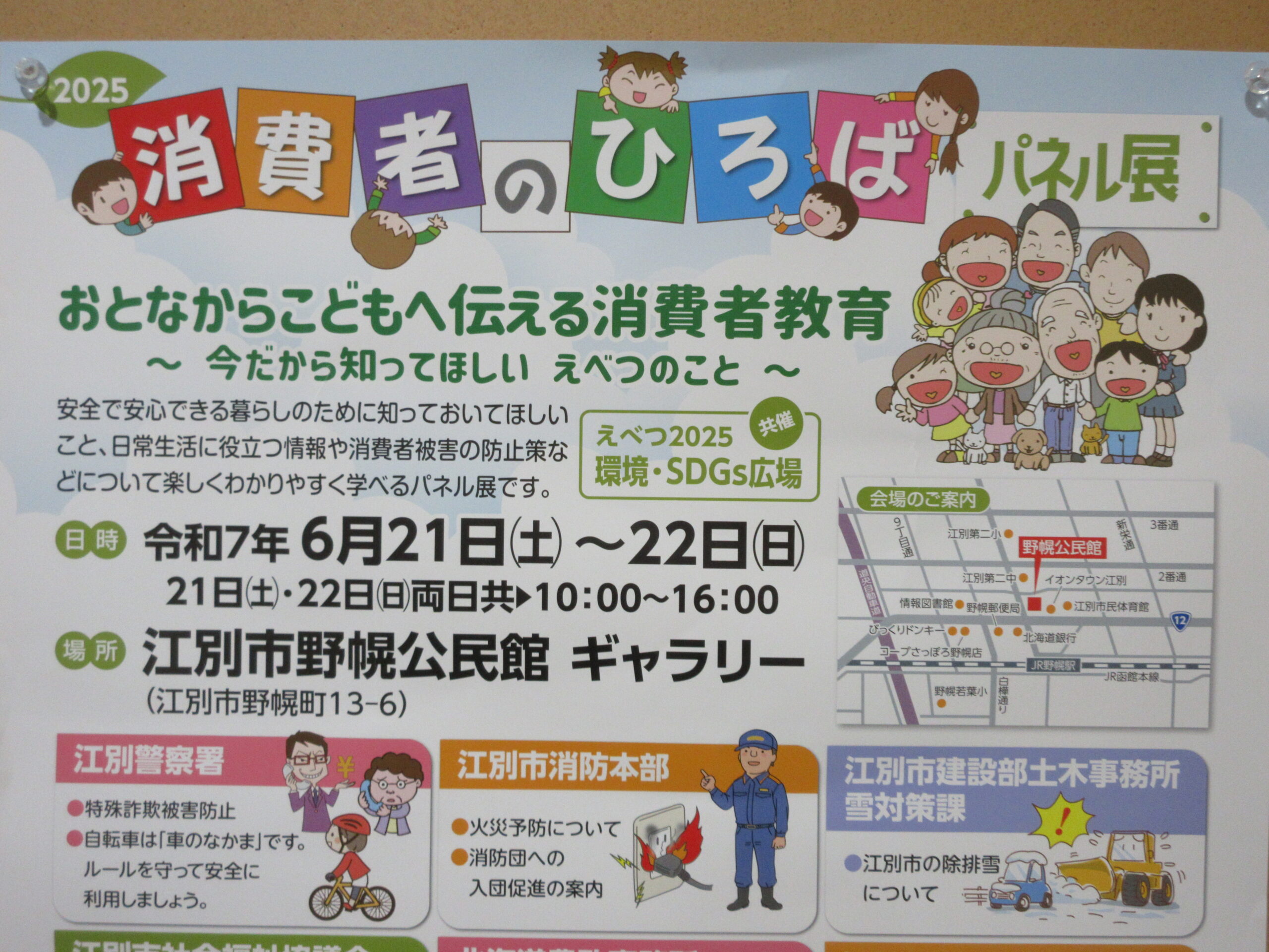 2025年6月21日(土)・22日(日)、北海道江別市の野幌公民館ギャラリーにて、人気イベント「消費者のひろば」と「環境SDGs広場」が同時開催されます。