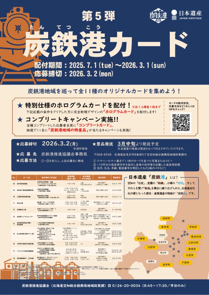 参照記事:PR TIMES「炭鉄港地域を巡ってカードを集めよう!炭鉄港カード(第5弾)は7月1日(火)配付開始!」